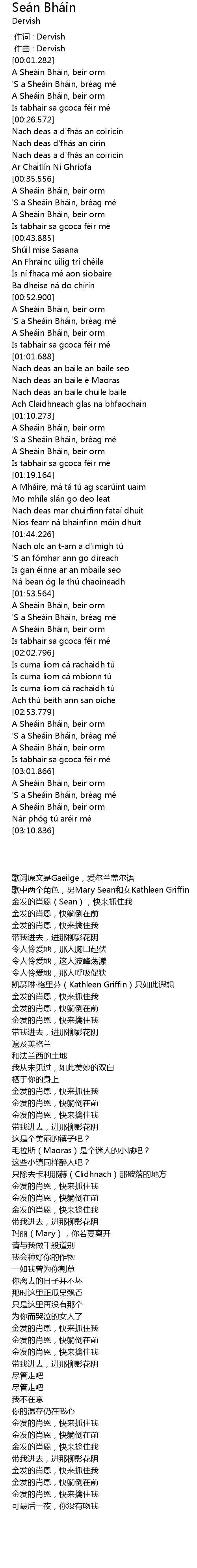 | [00:37.886] | ' S a Sheá in Bhá in, bré ag mé |