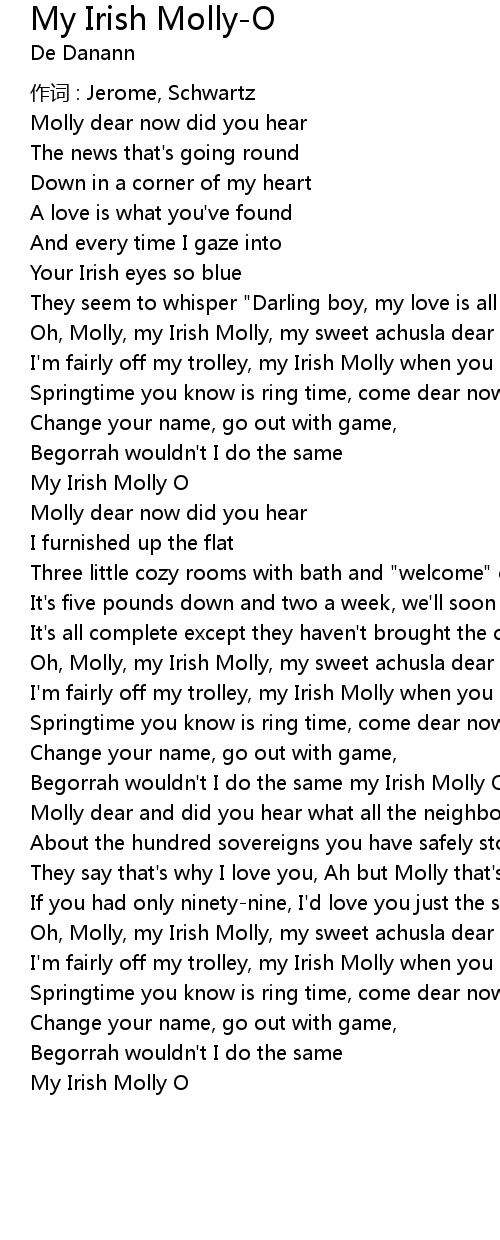 | Oh, Molly, my Irish Molly, my sweet achusla dear | |