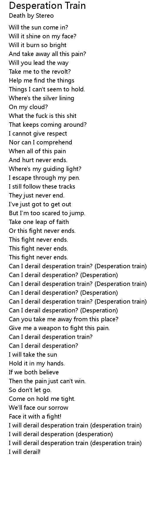 I will derail desperation train (desperation train) |