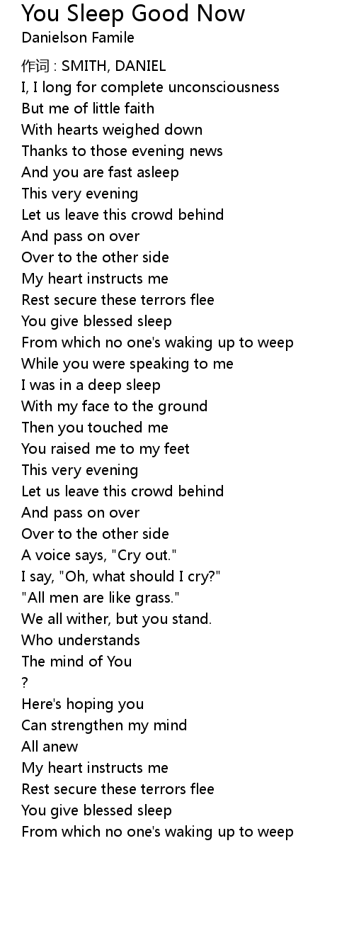 | Song | You Sleep Good Now |