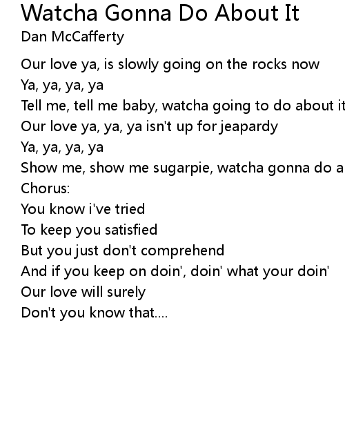 | Show me, show me sugarpie, watcha gonna do about it | |