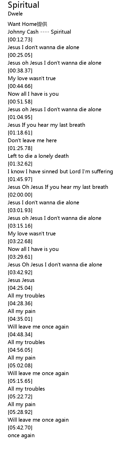 | [00:01.77] | Johnny Cash ---- Spiritual |