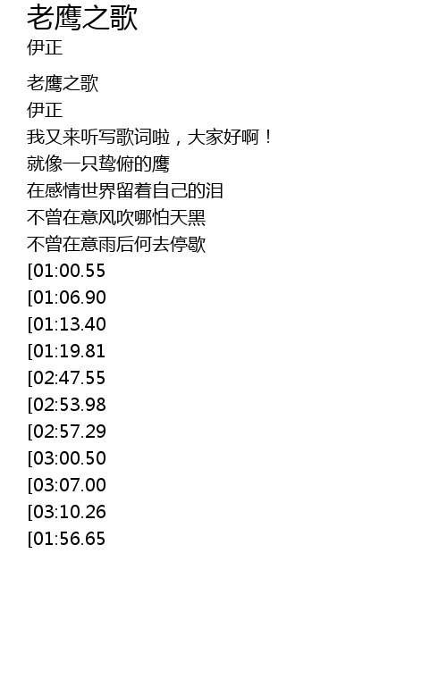 | [02:21.67][01:00.55] | 就像一只鸷俯的鹰 |