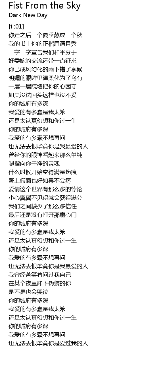 | [01:22.08] | nǐ de chéng fǔ yǒu duō shēn |