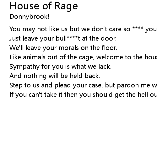 | Like animals out of the cage, welcome to the house of rage! | |