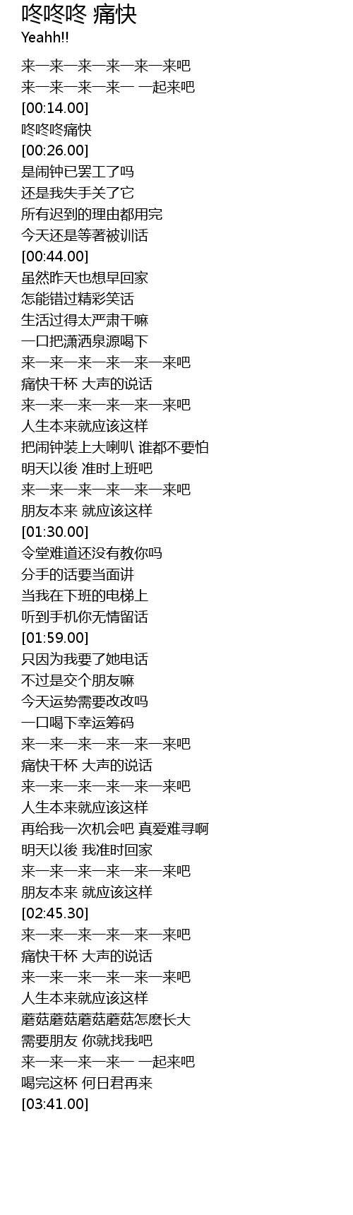 | [03:14.46] | lái yī lái yī lái yī lái yī lái yī lái ba |