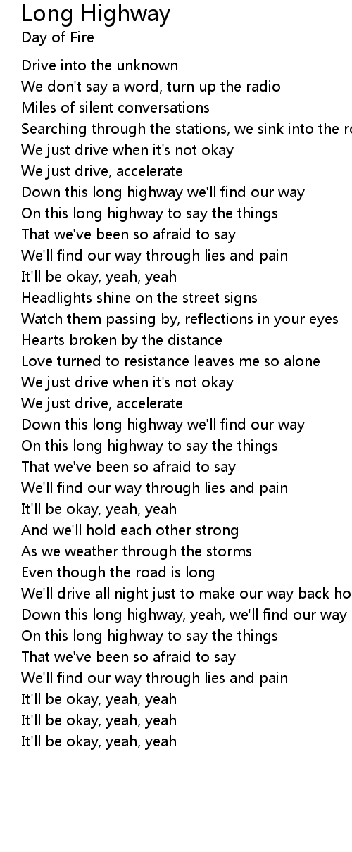 Down this long highway, yeah, we'll find our way |