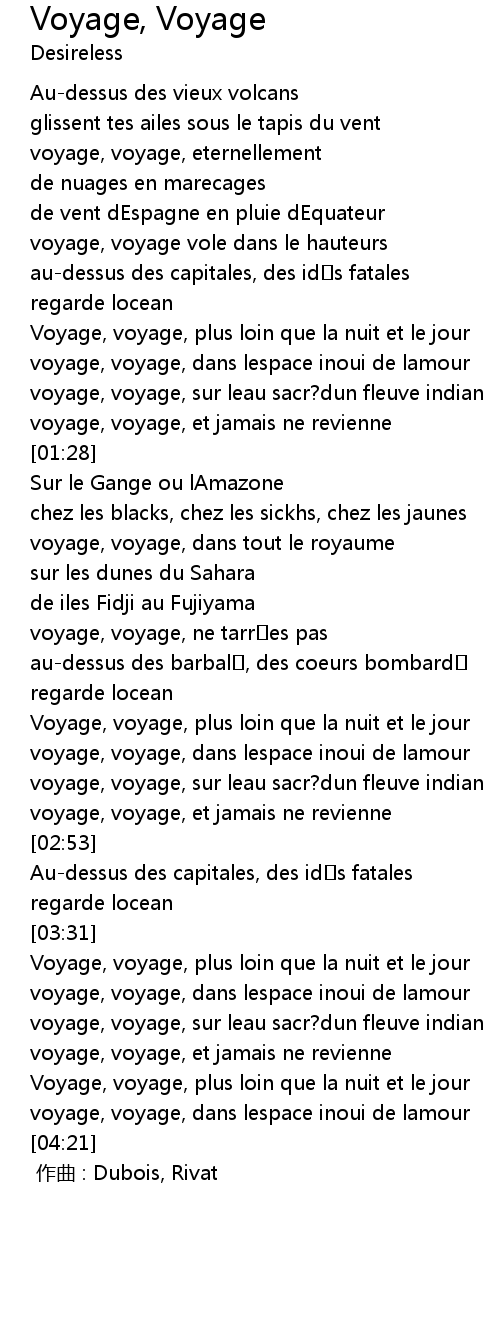 | [03:33] | Voyage, voyage, plus loin que la nuit et le jour |