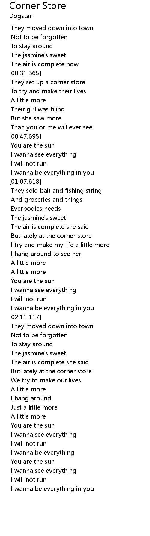 Corner Store Lyrics