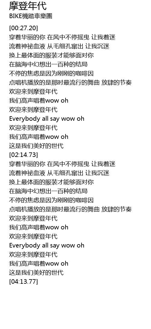 | [03:44.73] | huān yíng lái dào mó dēng nián dài |