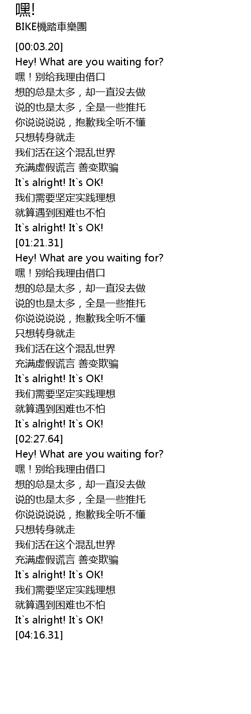 | [03:26.84] | 嘿!别给我理由借口 |