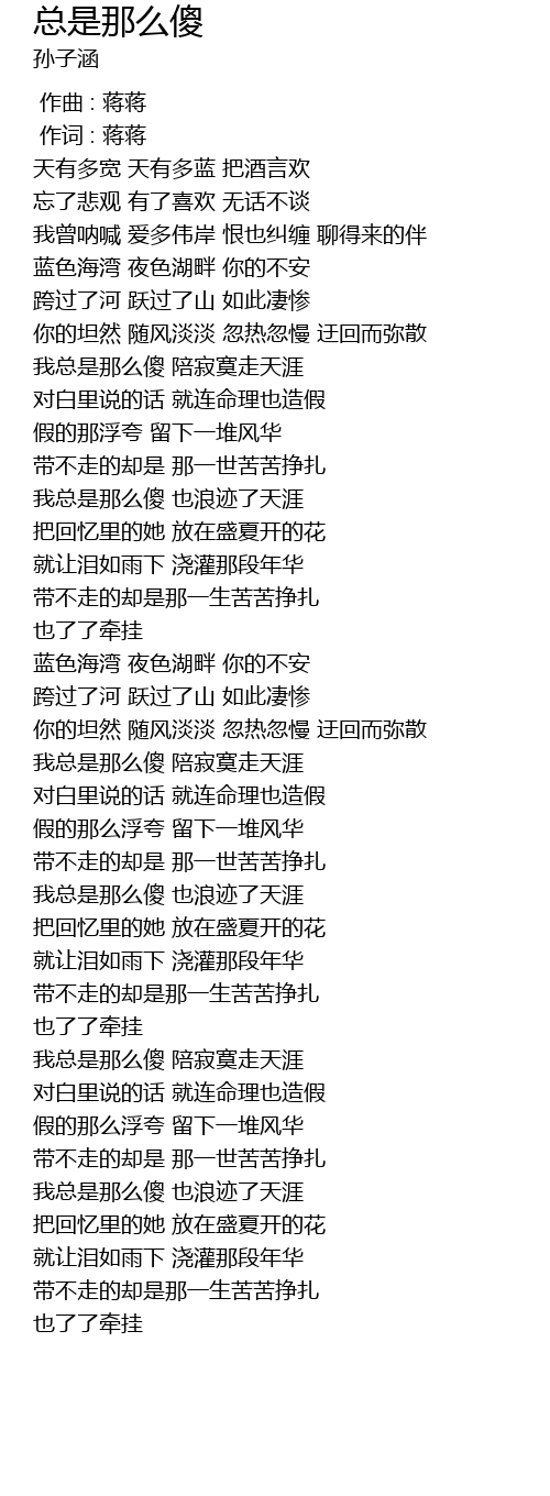 | [00:48.74] | 我总是那么傻 陪寂寞走天涯 |