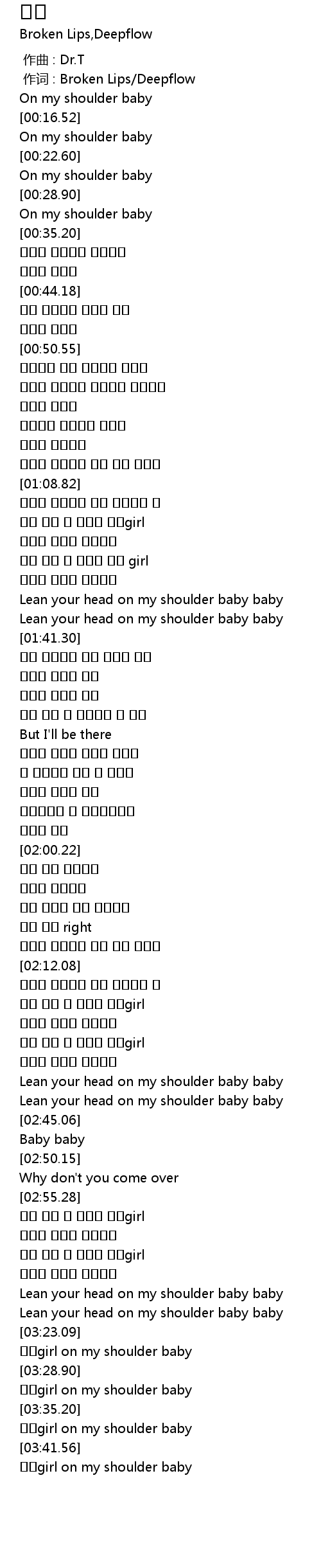 | [03:43.25] | 기대girl on my shoulder baby |