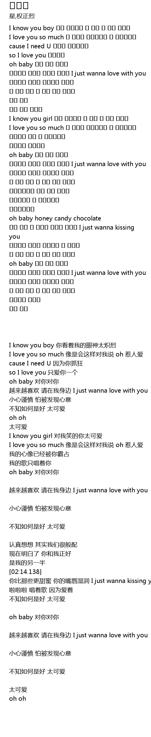 | [01:50.923] | 난 몰라 몰라 넌 너무 너무 귀여워 |