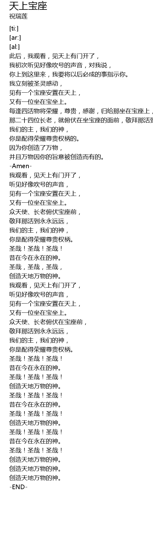 | [04:17.51] | 圣哉!圣哉!圣哉! |