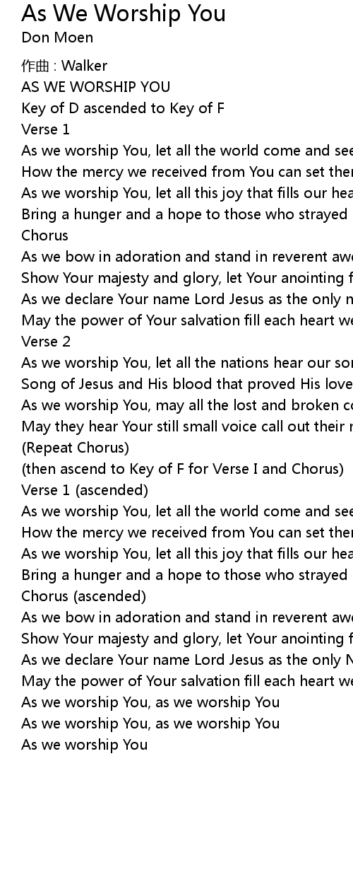 | (then ascend to Key of F for Verse I and Chorus) | |