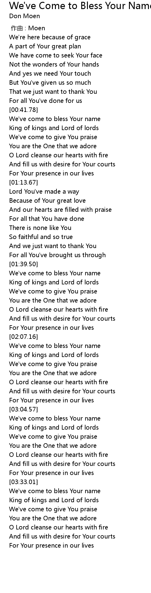 | [00:42.78] | We' ve come to bless Your name |