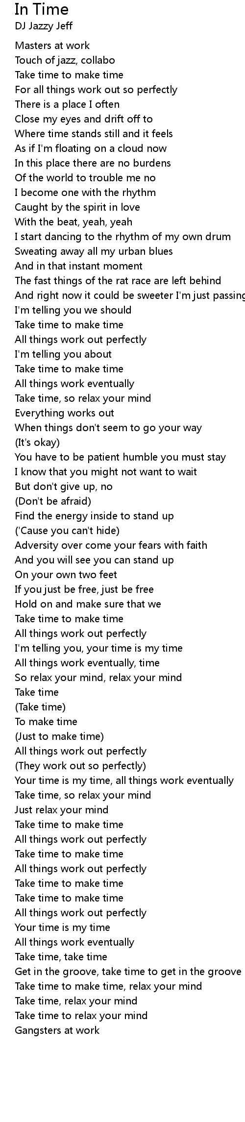 Your time is my time, all things work eventually |