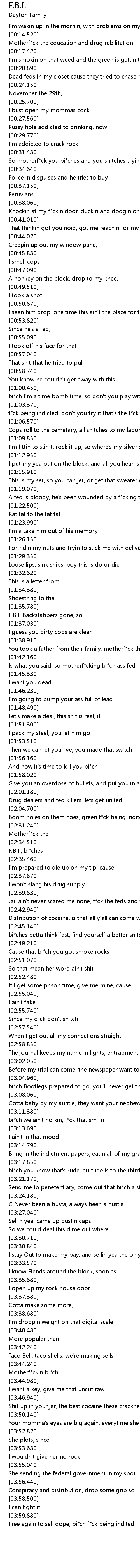 f*ck being indicted, don't you try it that's the f*ckin story |