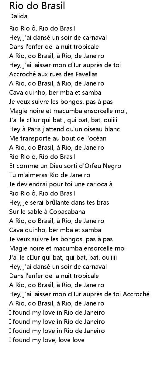 | Tu m'aimeras Rio de Janeiro | |