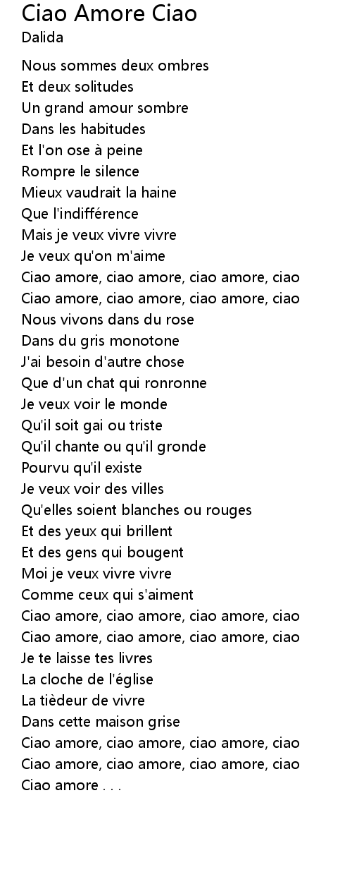 | Ciao amore, ciao amore, ciao amore, ciao | |