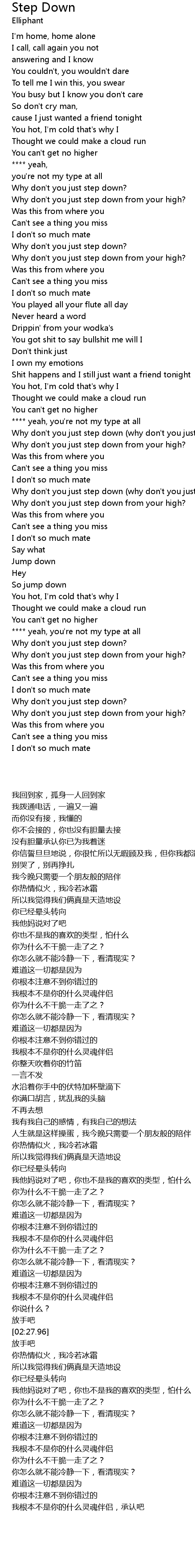| [02:07.39] | Why don't you just step down (why don't you just step down) |