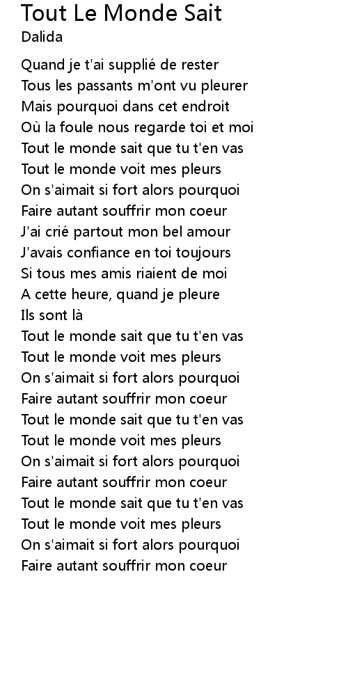 | Song | Tout Le Monde Sait |