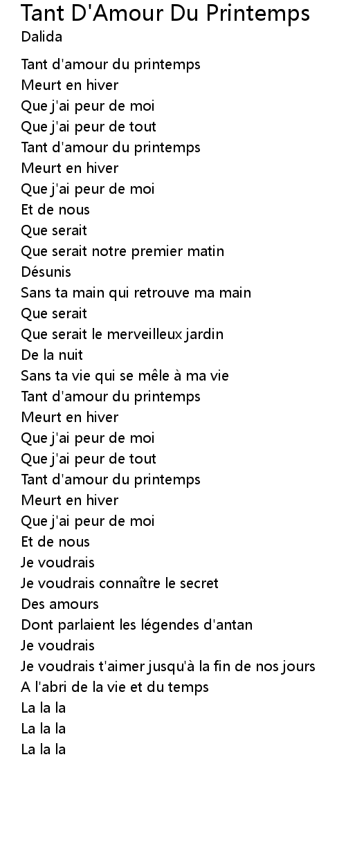 | Je voudrais t' aimer jusqu'a la fin de nos jours | |