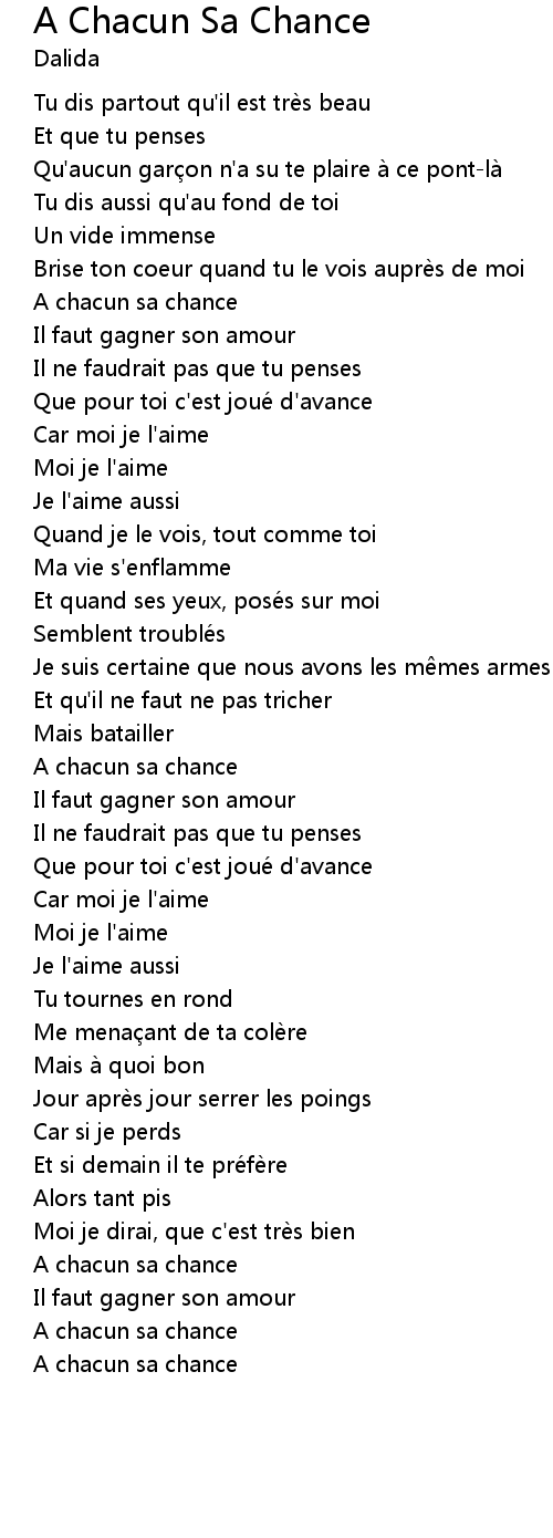 | Song | A Chacun Sa Chance |