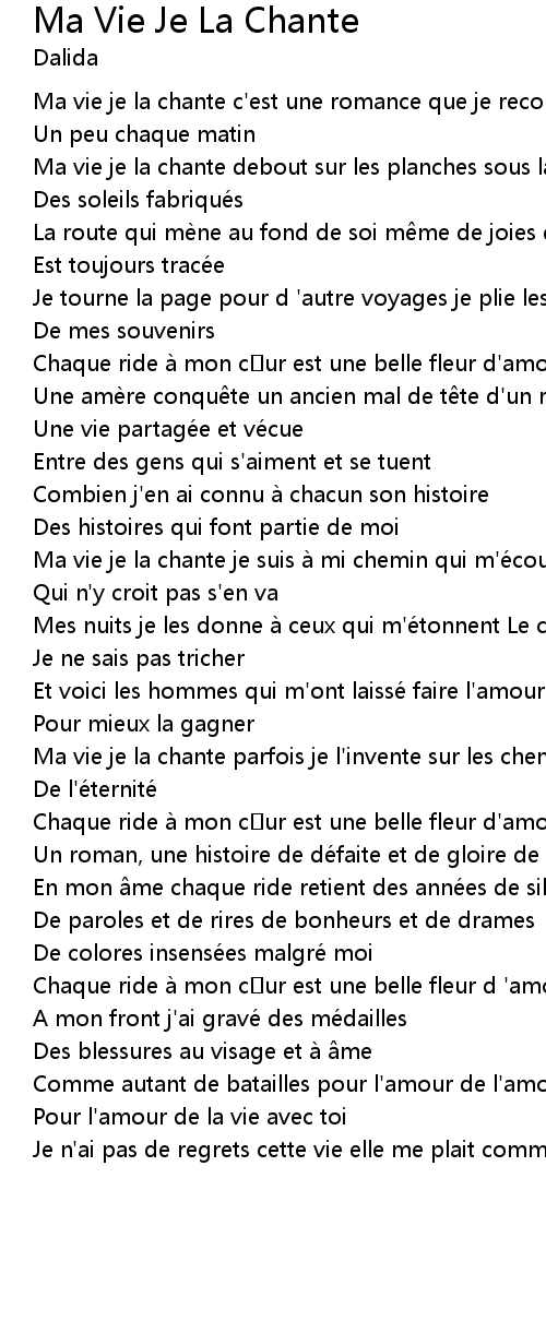 | Ma vie je la chante je suis a mi chemin qui m'e coute me croit | |