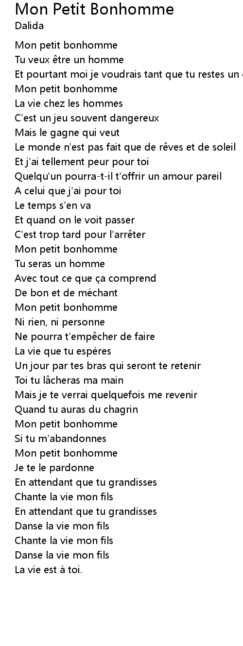 | Song | Mon Petit Bonhomme |