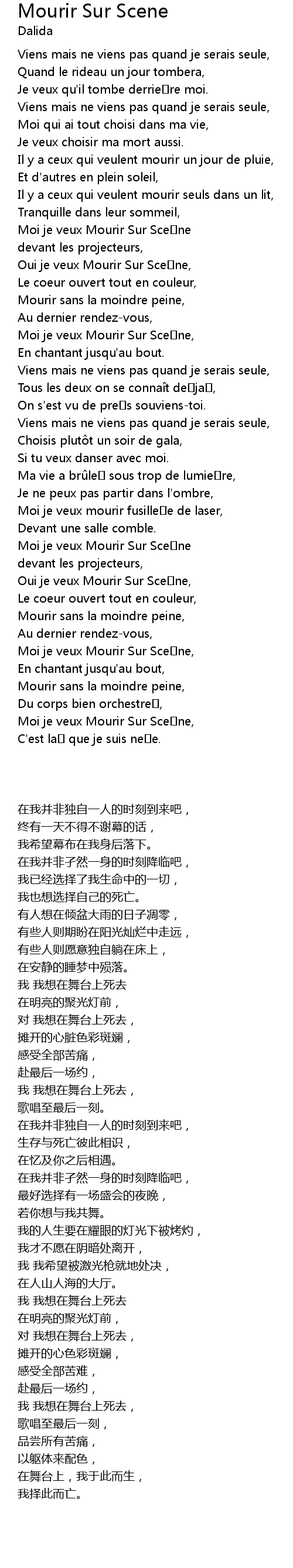 | [02:21.923] | Oui je veux Mourir Sur Scène, |