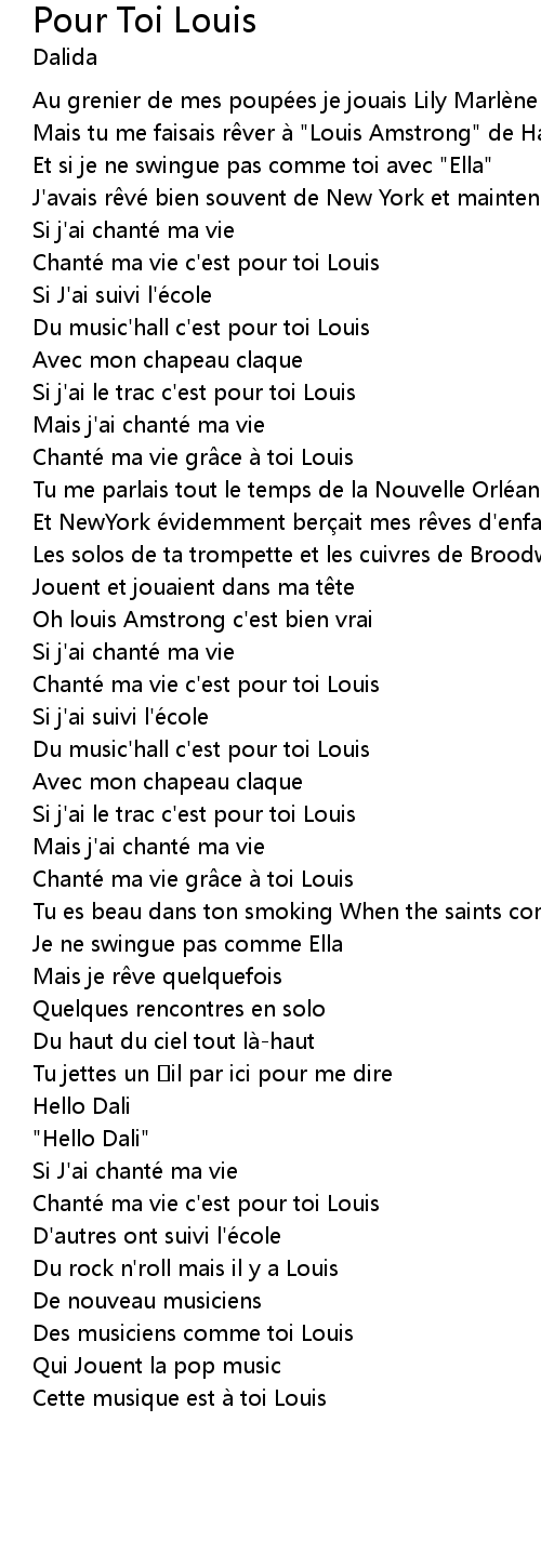 | Mais tu me faisais rêver à "Louis Amstrong" de Harlem | |