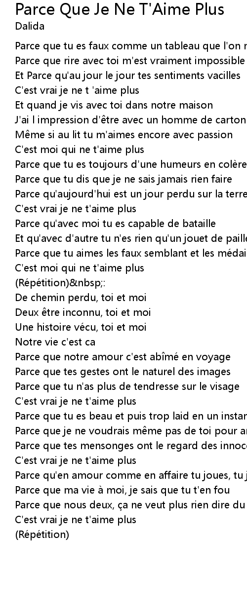 | C'est vrai je ne t 'aime plus | |