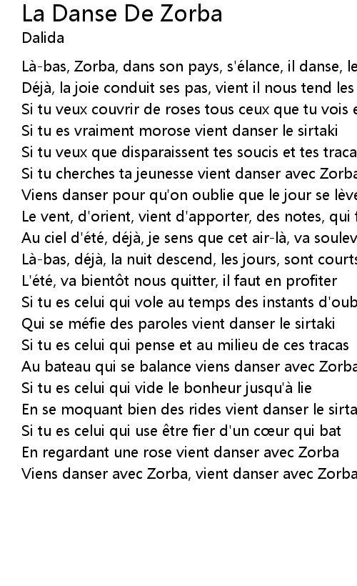 | Viens danser avec Zorba, vient danser avec Zorba |