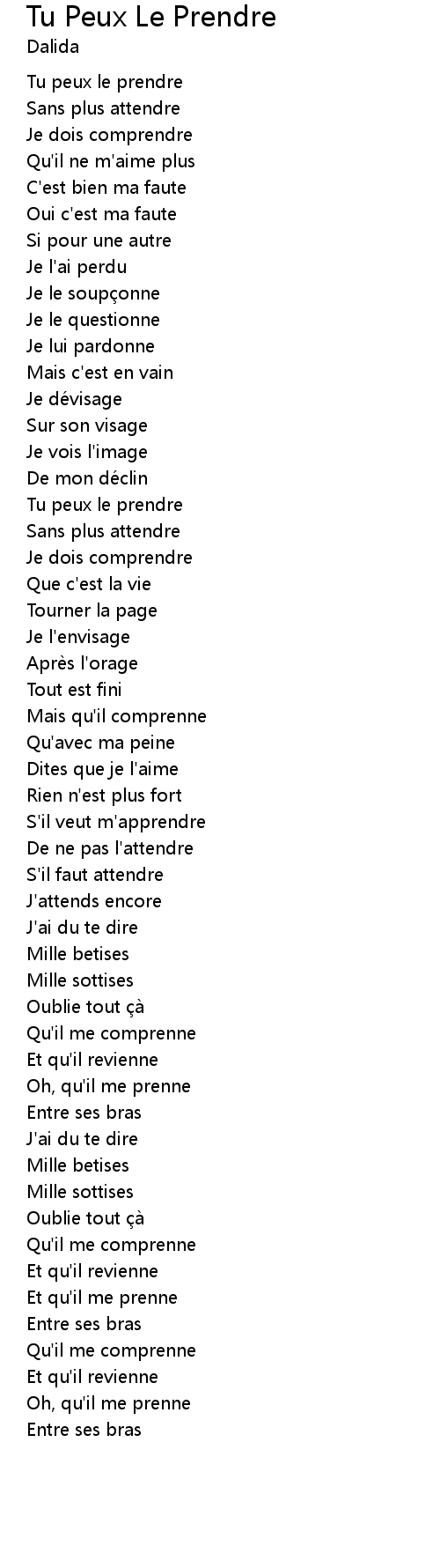 | Song | Tu Peux Le Prendre |