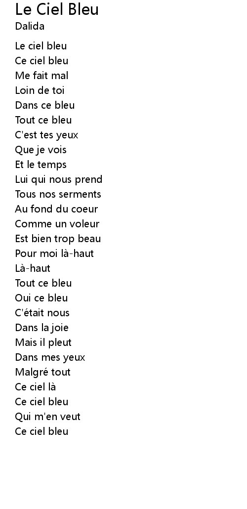 | Song | Le Ciel Bleu |