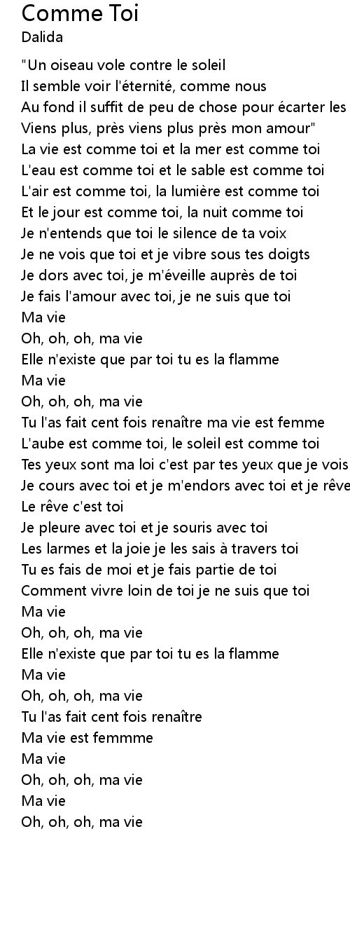 | Tu l'as fait cent fois renaître ma vie est femme | |