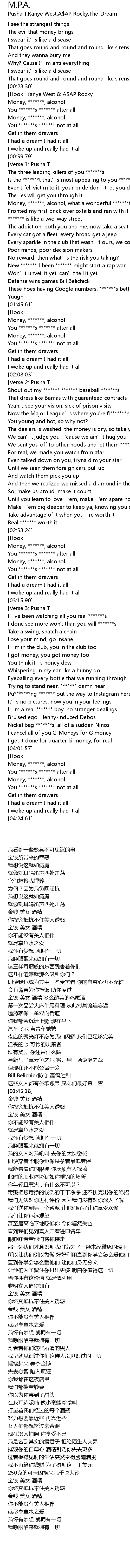 | [01:10.07] | Money, *******, alcohol, what a wonderful *******tail |