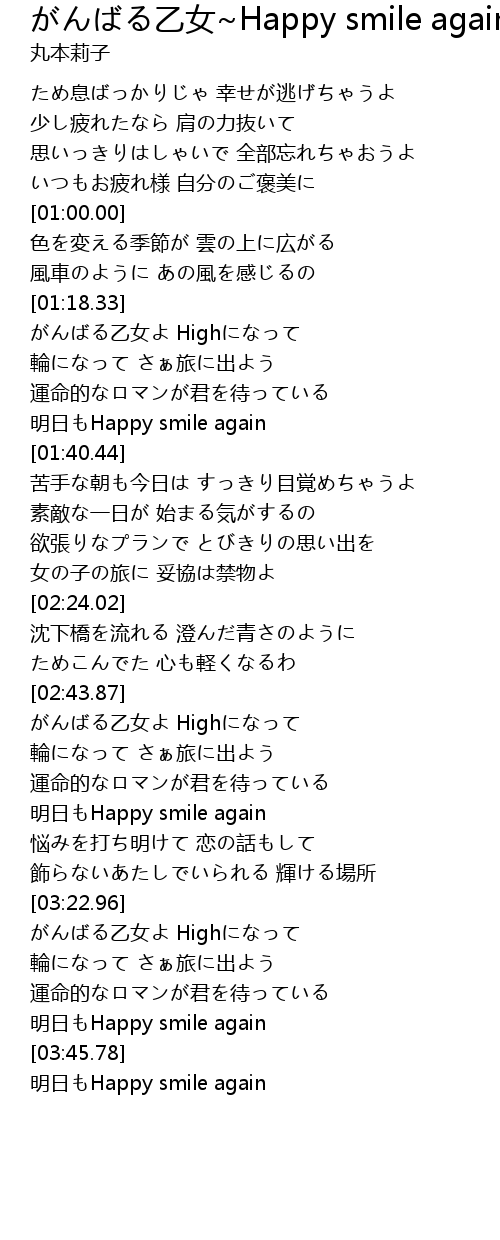 | [01:36.94] | 明日もHappy smile again |