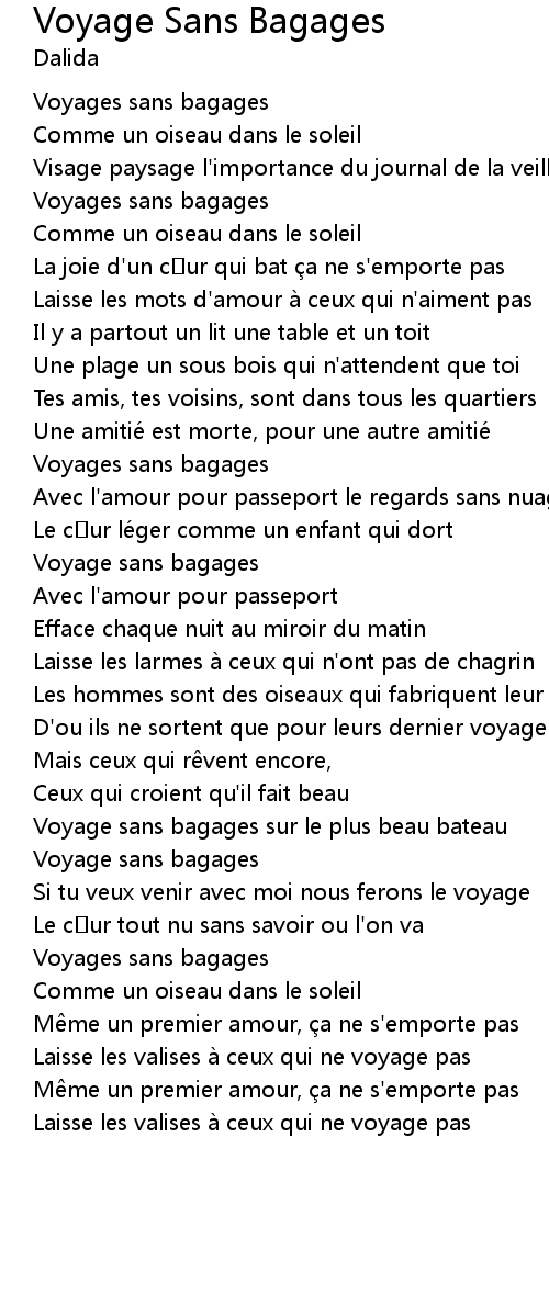 | Song | Voyage Sans Bagages |