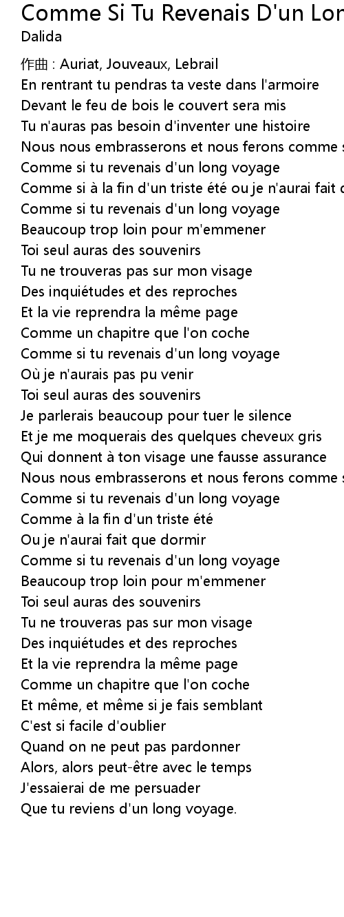 | Song | Comme Si Tu Revenais D'un Long Voyage |
