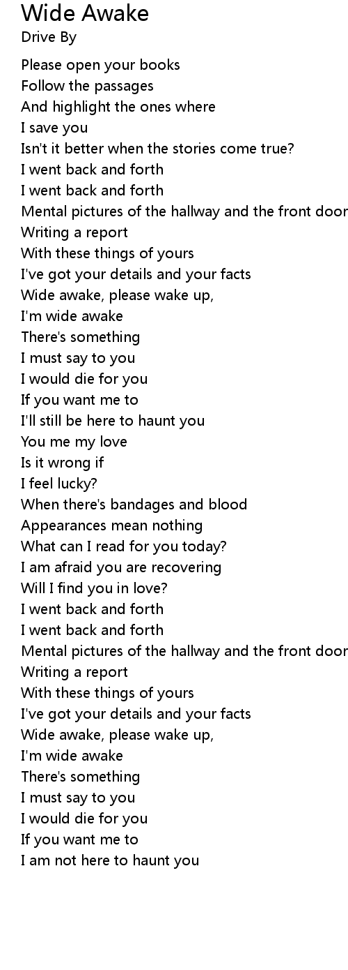Wide awake, please wake up, |