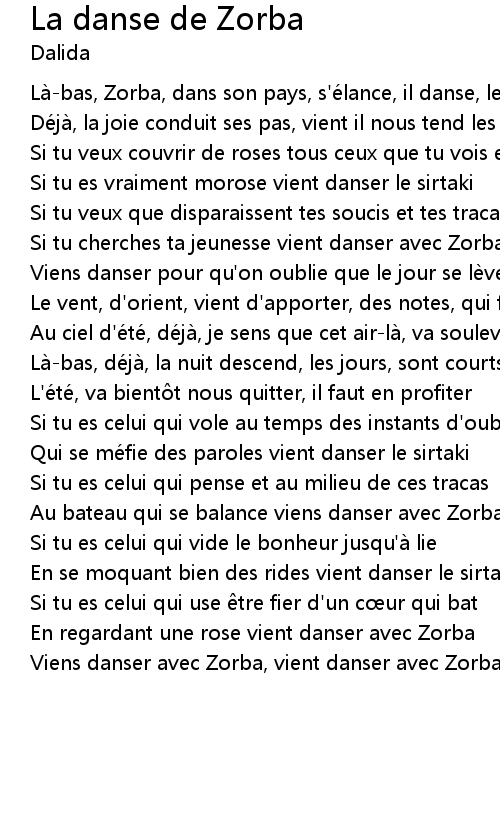 | Viens danser avec Zorba, vient danser avec Zorba |
