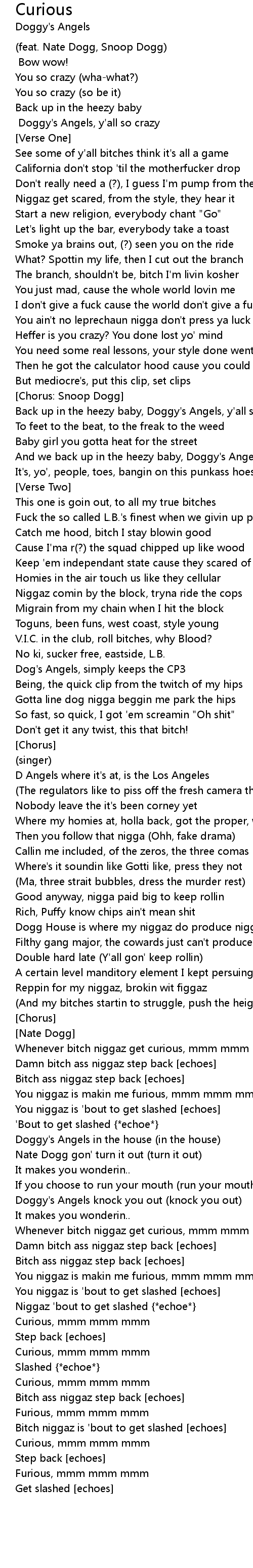 Whenever bitch niggaz get curious, mmm mmm mmm |