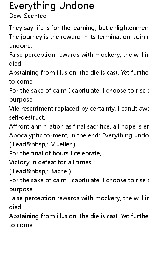 | Affront annihilation as final sacrifice, all hope is erased: Everything undone. | |