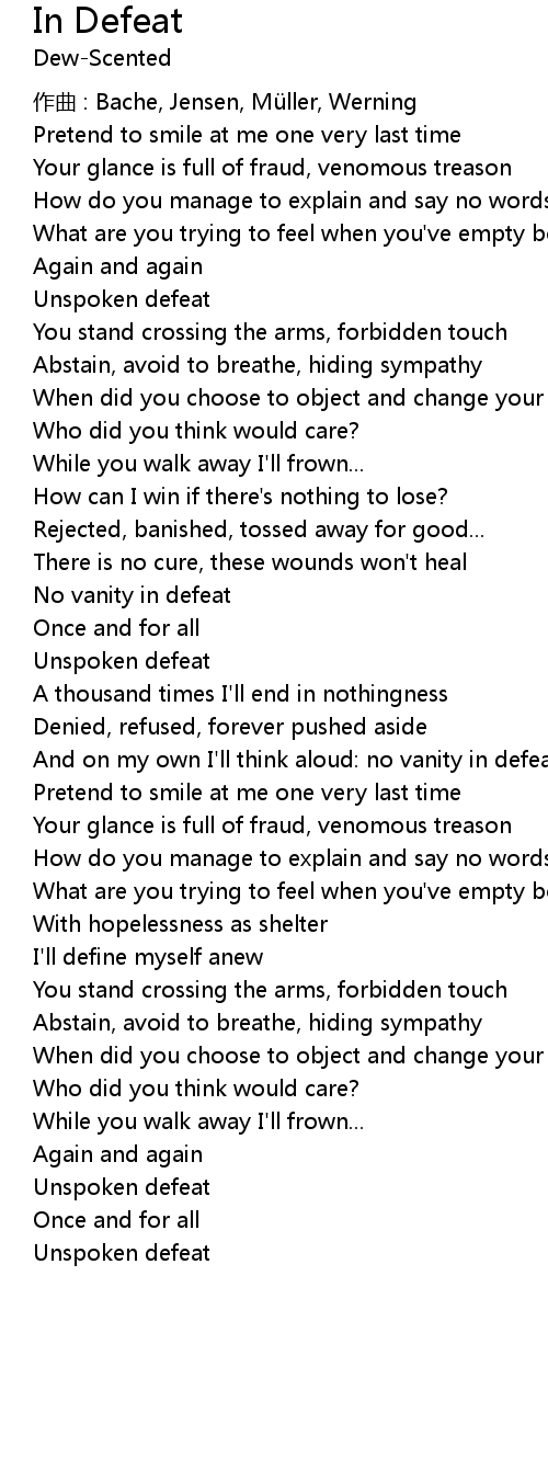 | And on my own I' ll think aloud: no vanity in defeat | |