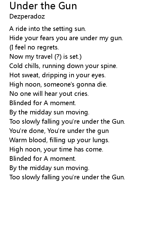 Too slowly falling you're under the Gun. |