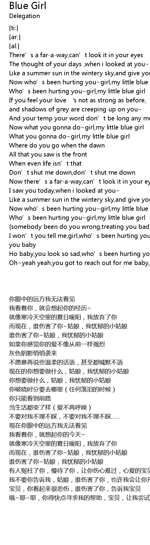 | [04:07.59] | Who’s been hurting you~girl,my little blue girl |
