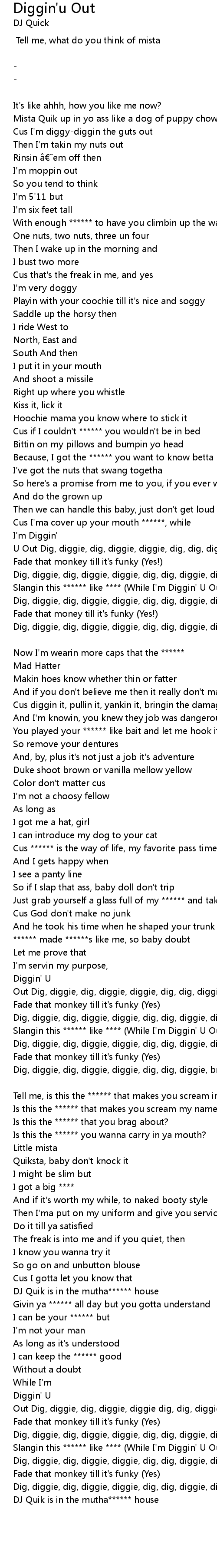 | U Out Dig, diggie, dig, diggie, diggie, dig, dig, diggie, dig, dig, dig it out | |